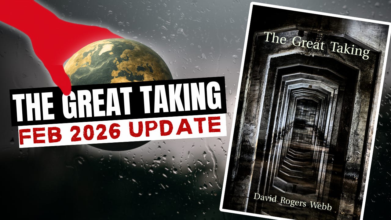 Over the past two weeks, there have been several developments related to the Great Taking that I want to share. First, a quick FYI: the book’s author, David Rogers Webb, recently sat down with Daniela Cambone for an interview, where he provided an update on the current status of the Taking and shared how his thinking is evolving as we head into Spring 2026. This interview followed my late-2025 article titled Europe Prepares To Cross The Rubicon - Risking EU Wide Financial Collapse, which explained how Europe’s plan to seize frozen Russian assets was directly linked to the Great Taking.