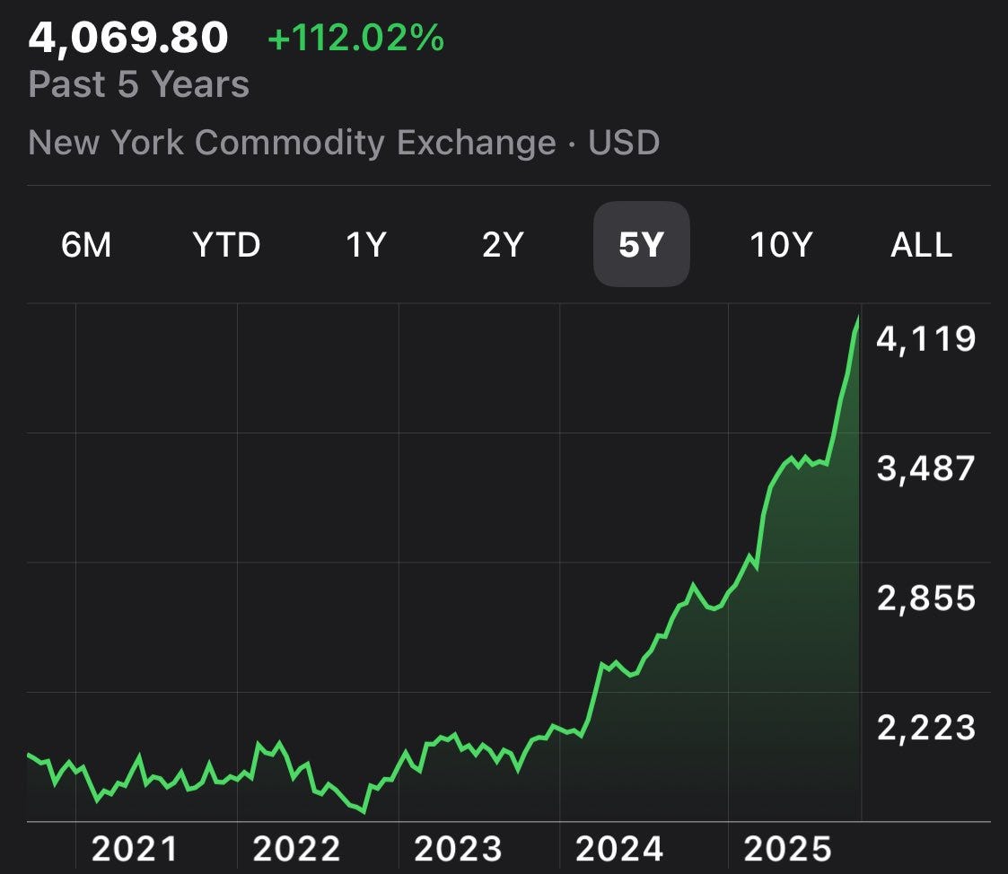To highlight the point: with gold up roughly 50% in 2025, China has effectively booked over $1 trillion in unrealized gains this year alone! Similarly, their citizens, many still reeling from the collapse of the property market, are now being cushioned by the rising gold price as a result of the government’s long-standing push to redirect household savings into gold. So make no mistake, a rising gold price is welcomed by China. Especially in 2025.