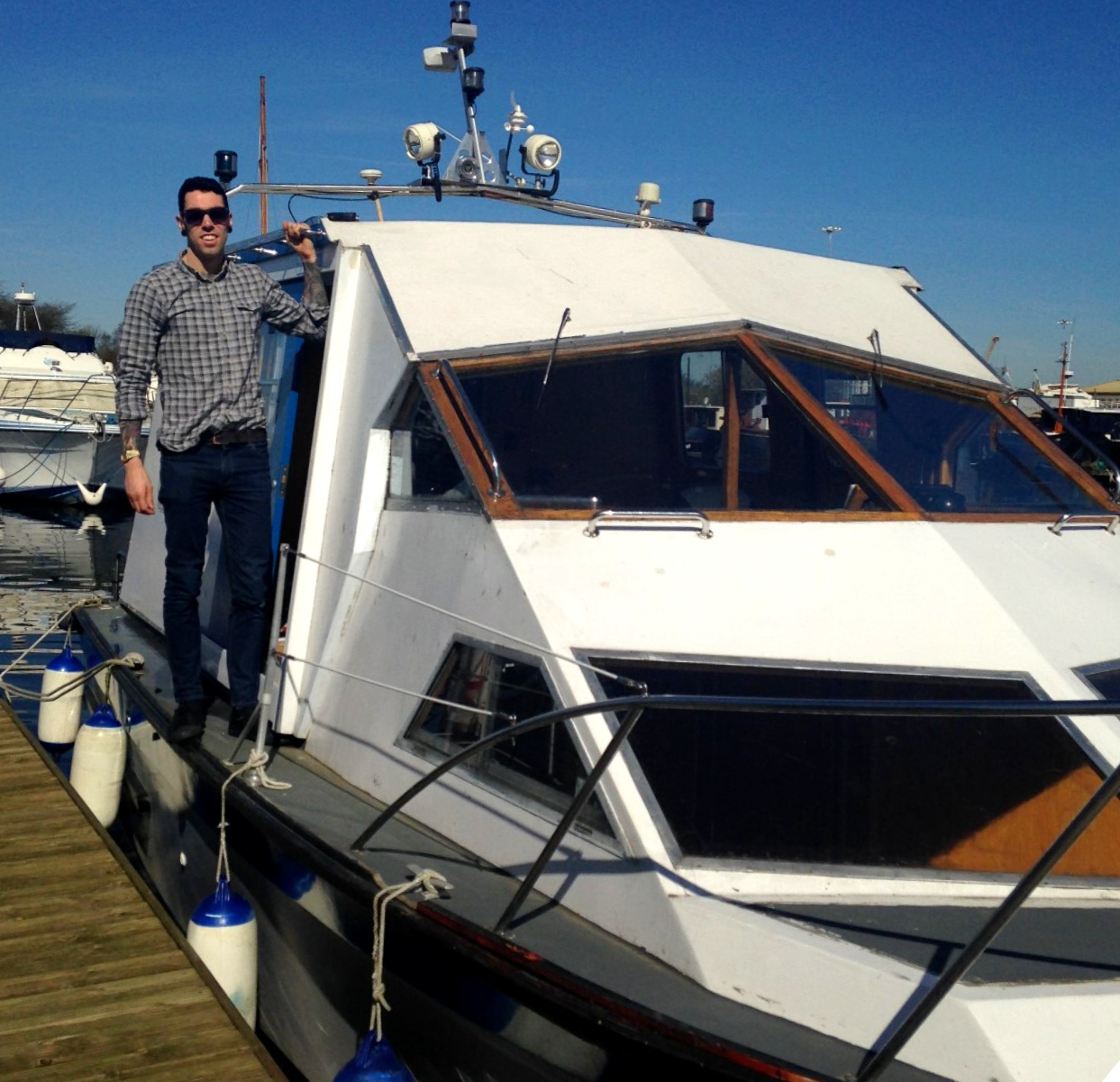 We had $10,000 between us. That was it. We bought an 8 meter cabin cruiser for around $7,000, leaving $3,000 to invest — along with whatever else we could save. The boat had been built for sea faring, and was completely custom built inside for tiny living.